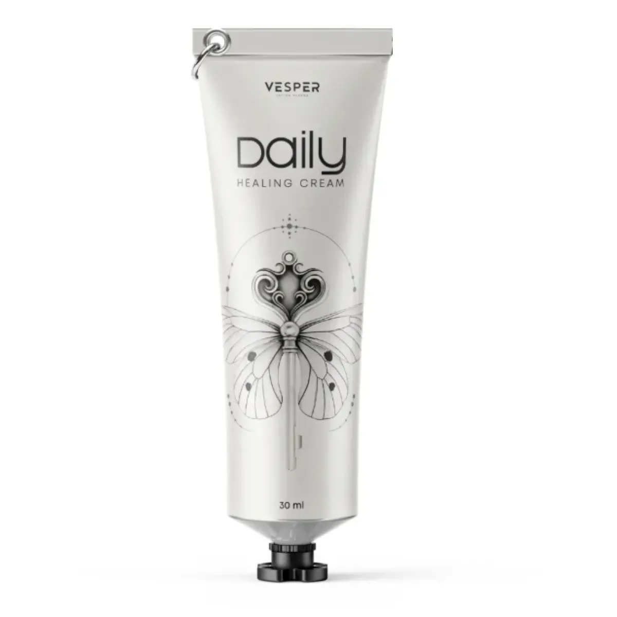 Загоювальний денний крем VESPER тепер у новому форматі упаковки. Цей унікальний дизайн розроблено спільно з майстринею OLYA LUUCKY, яка поклала в оформлення стиль мінімалізму та графіки. Головна особливість – це люверс для карабіна. Тепер крем можна носити на ремені чи сумці, що дозволить доповнити ваш стиль. Карабін у комплект із кремом не входить.